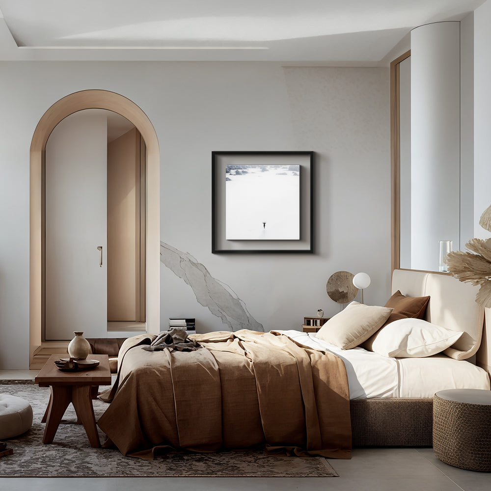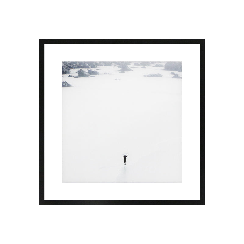 דמות יחידה עומדת בלב נוף שקט, מרימה ידיים בתחושת ניצחון