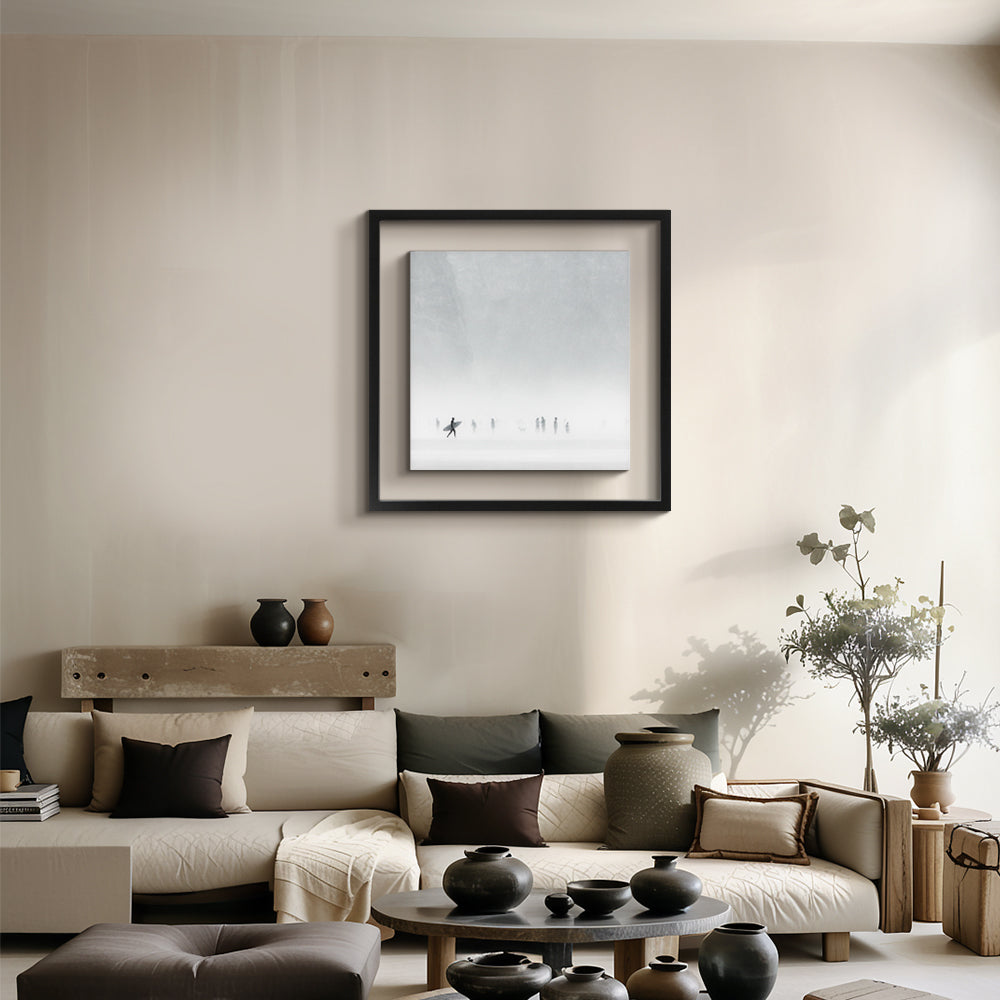 גולש בודד מתקדם לעבר קבוצת אנשים נמסים בתוך ערפל כבד