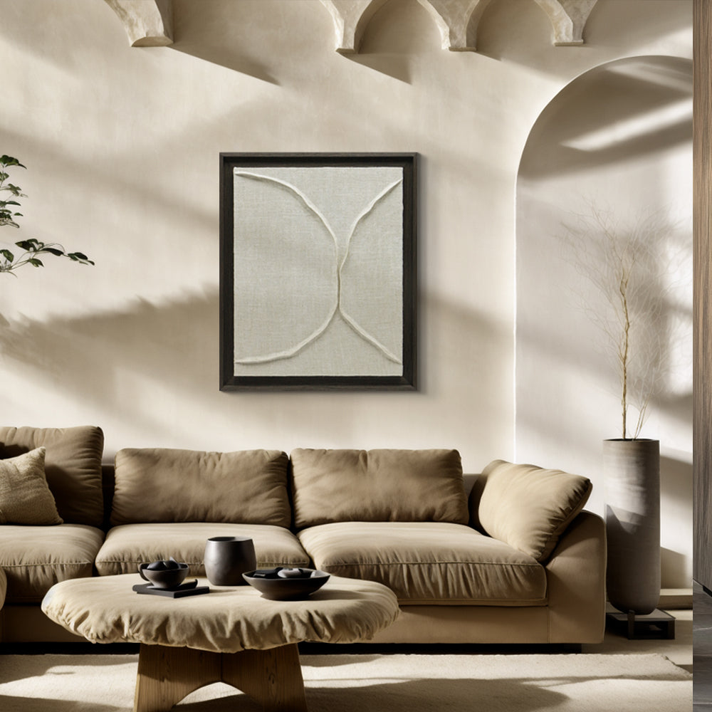 בד מתוח עם קפלים עדינים שיוצרים דיאלוג בין טקסטורה לריק שקט חומרי שמעורר סקרנות