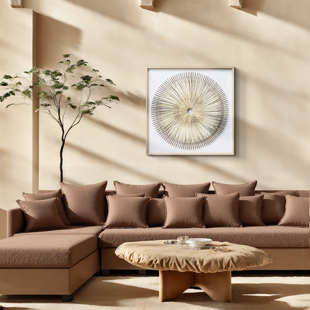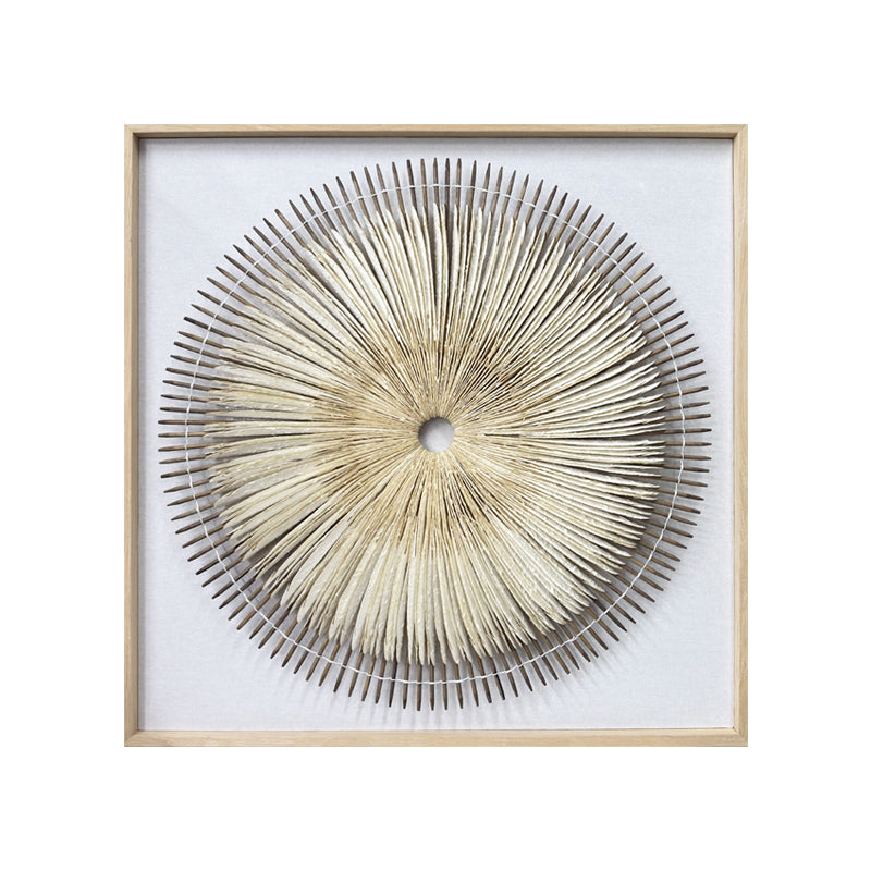 הדימוי הסימטרי יוצר תחושת איזון, והחומריות הטבעית מעניקה מראה אורגני ומרגיעקומפוזיציה רדיאלית המזכירה פרח במבט מופשט