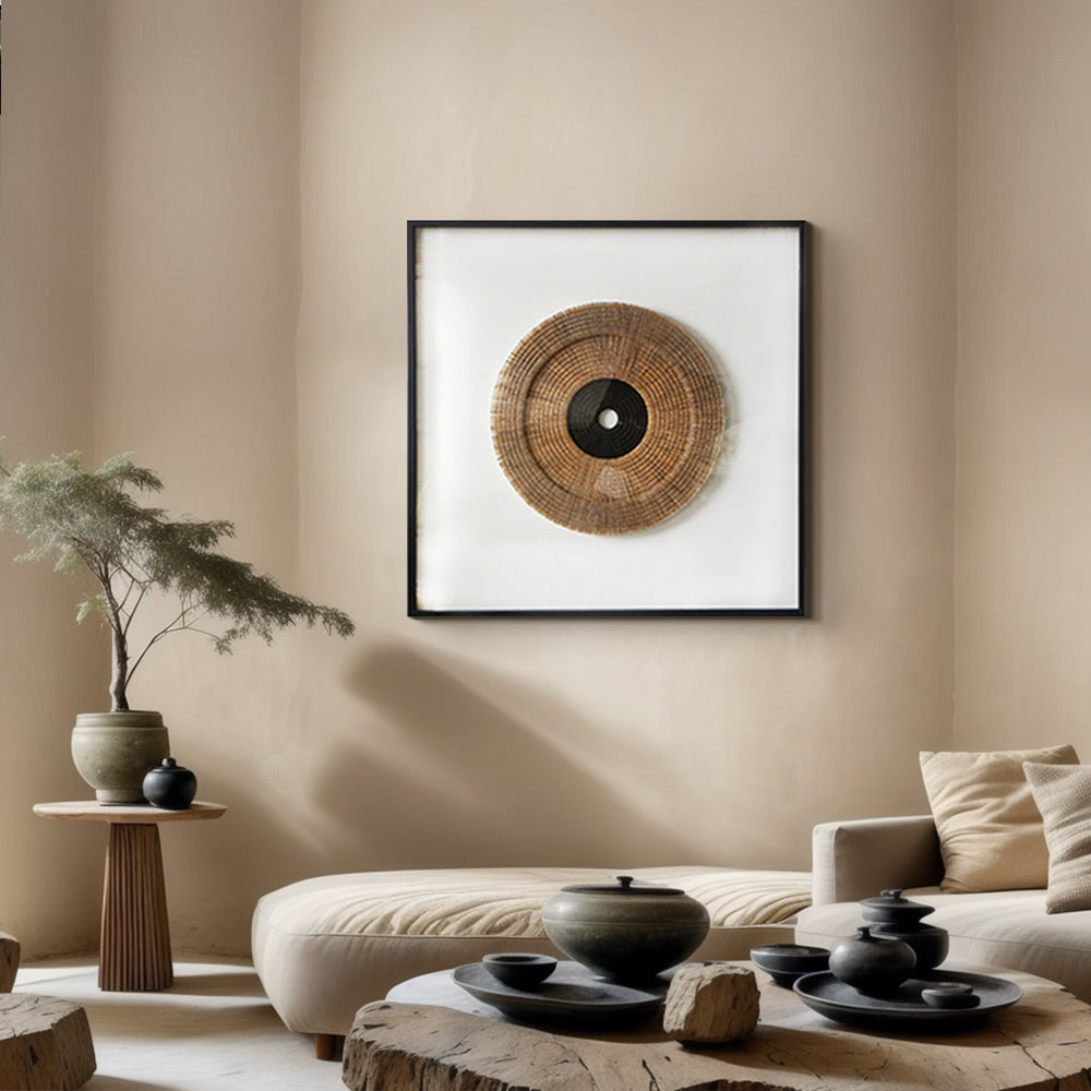 עבודת יד, עיגול קלוע בטכניקה טבעית וסימטרית יוצרת תחושת איזון והרמוניה שילוב בין תרבות שבטית לעיצוב מודרני