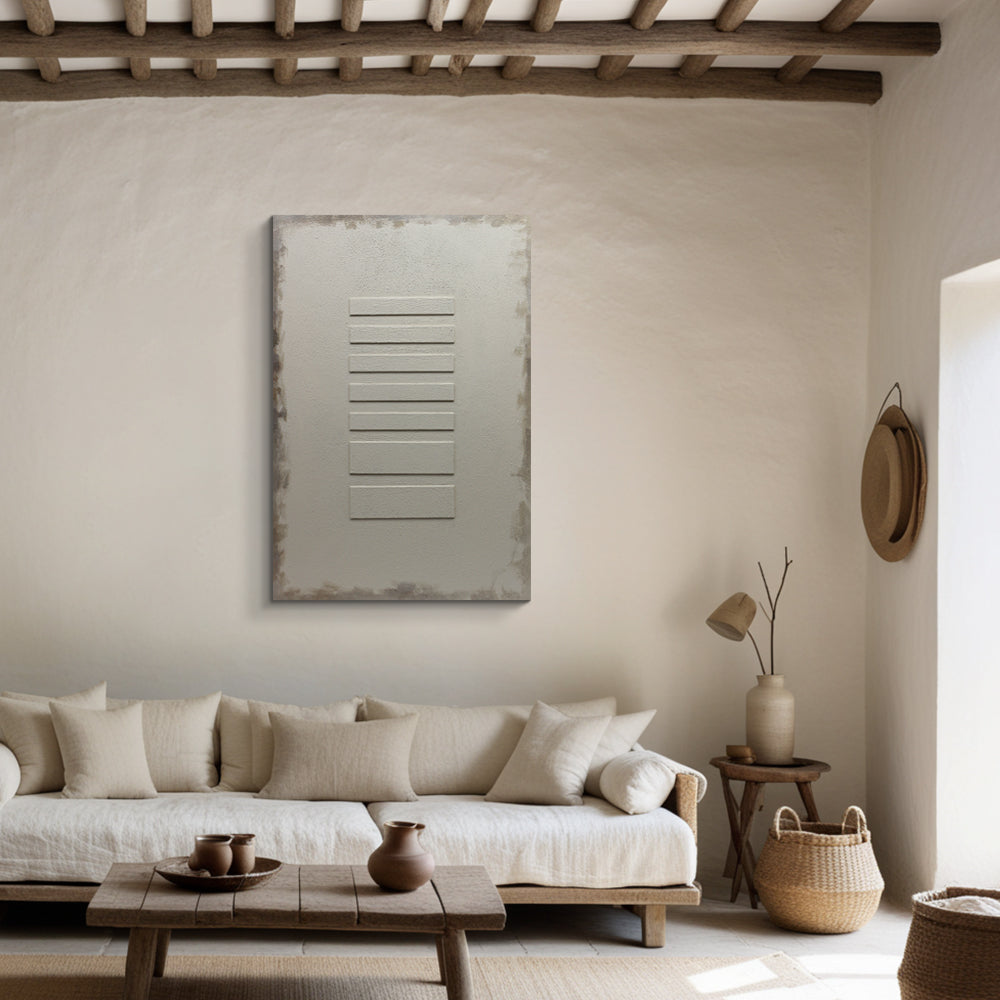 לוחות אחידים במרכז קנבס מגורען יוצרים תחושת איזון, כאילו מדרגות