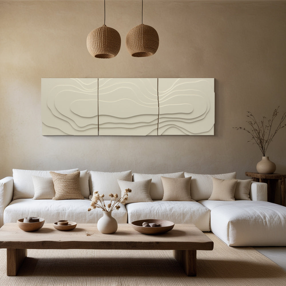 תבליט מינימליסטי המזכיר קווי גובה טופוגרפיים