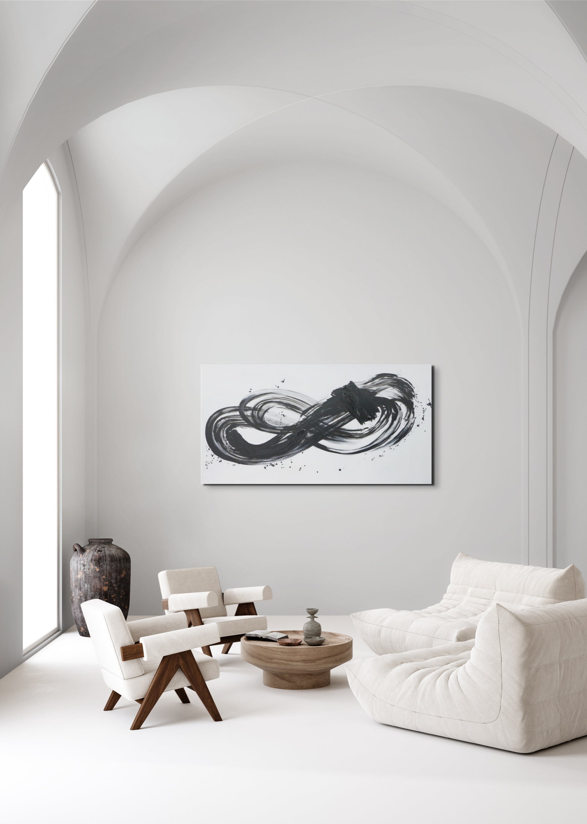 קו מתמשך שמתכופף באלגנטיות ומדמה סמל אינסוף, מלא עוצמה