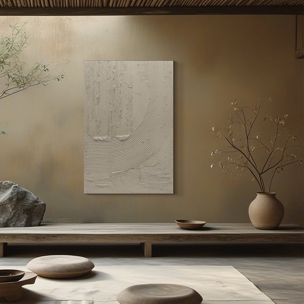 מרקם עשיר בצבע טרקוטה יוצר קשת גרפית שמזכירה שדות חרושים