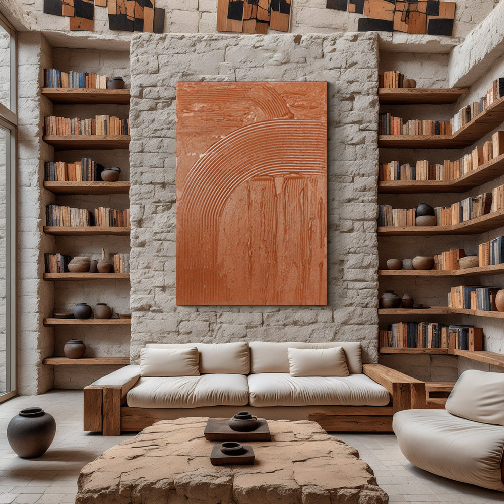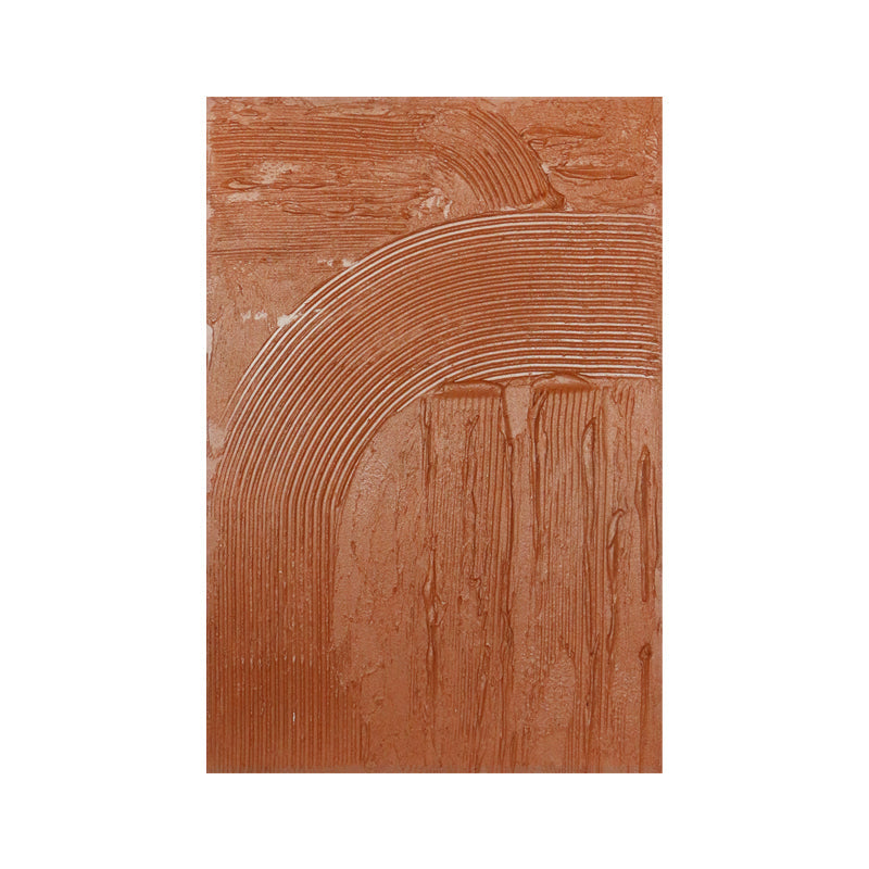 מרקם עשיר בצבע טרקוטה יוצר קשת גרפית שמזכירה שדות חרושים
