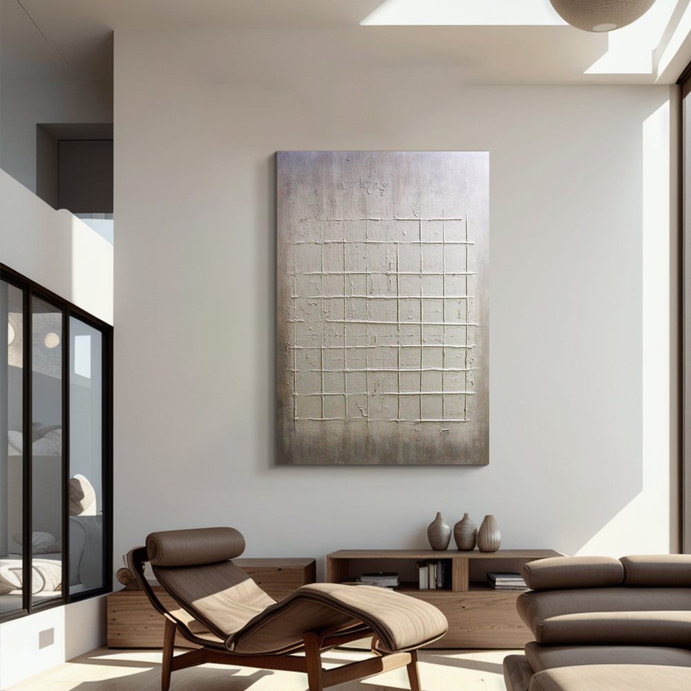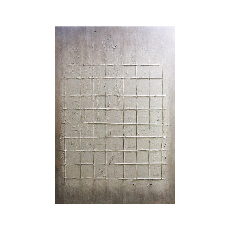 קומפוזיציה מופשטת של קווים אנכיים ואופקיים על רקע מחוספס