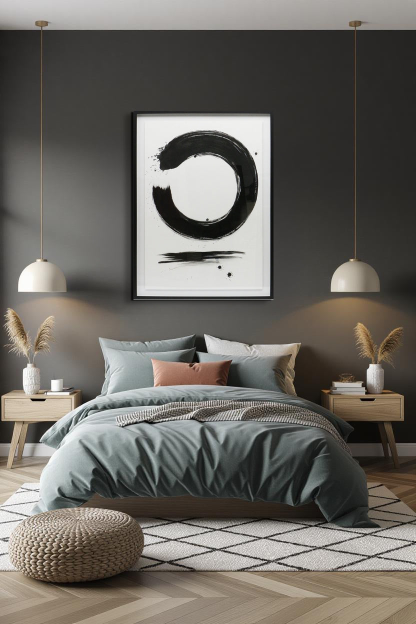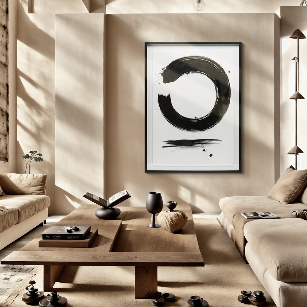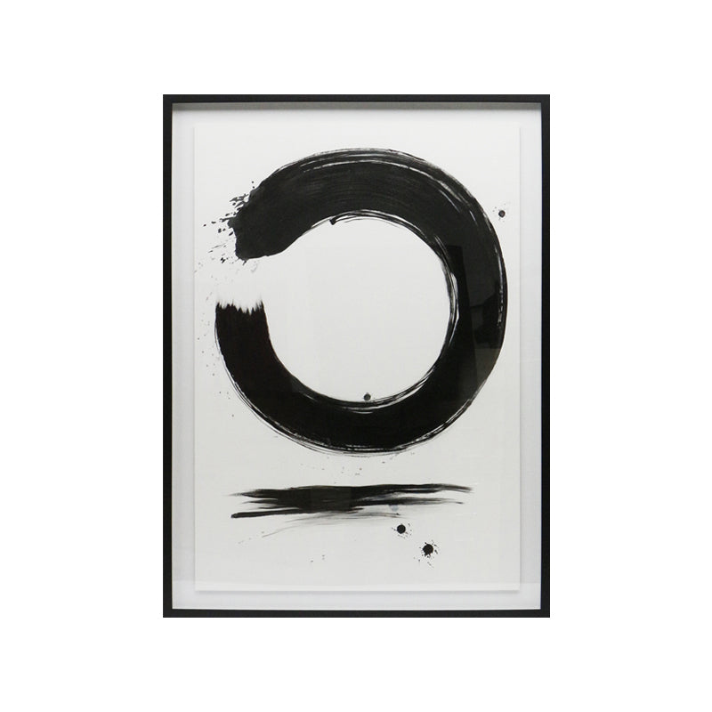 משיכת מכחול עגולה בסגנון יפני מסמלת זרימה, השלמה, ורגע עוצמתי של נוכחות שקטה